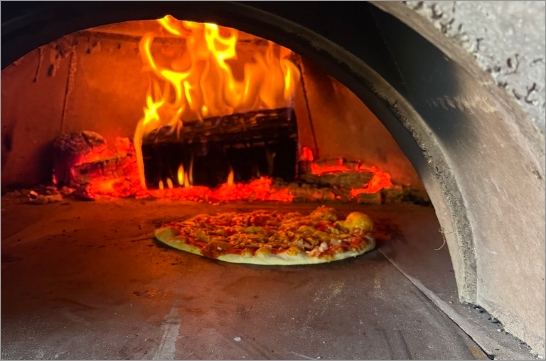 Le bar est ouvert tous les jours, pour un café frais le matin ou une collation en fin de journée. À heures fixes, vous pouvez déguster des pizzas sorties du four à bois, des spécialités au barbecue ou des frites fraîches.